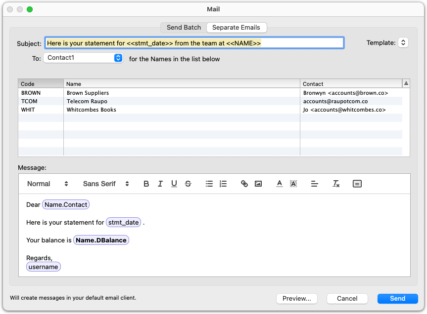- New email composer allows formatted emails, saving and loading of email templates, and testing of mail merge. You can also use it for composing emails that will be sent to your Mail/Outlook app — not just for SMTP
